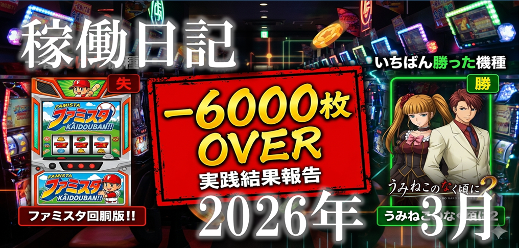 2026年 3月結果 7勝16敗 -6439枚